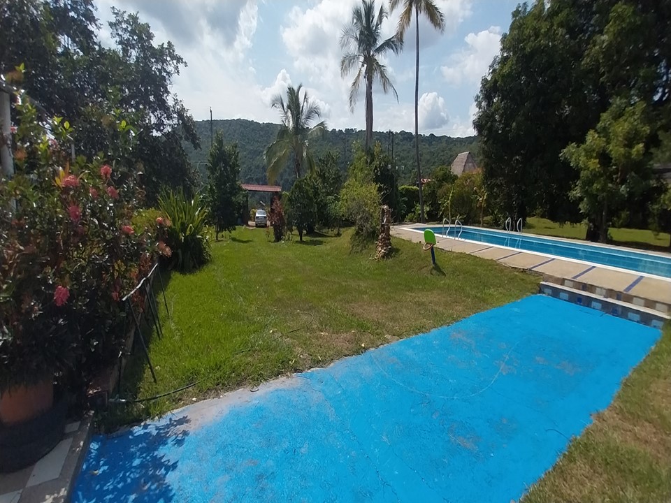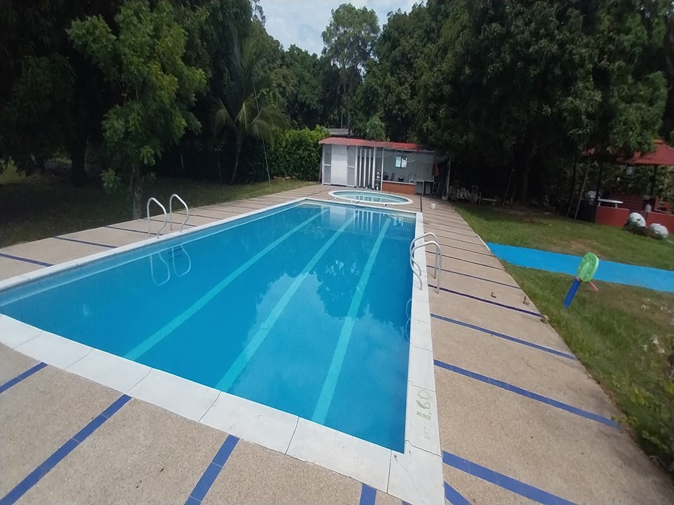 Acomodación para 30 personas, 5 habitaciones con ventilador, y 4 baños cocina, comedor, BBQ, área social, TV, boli rana, piscina para adultos y niños privada, amplio parqueo para carros.